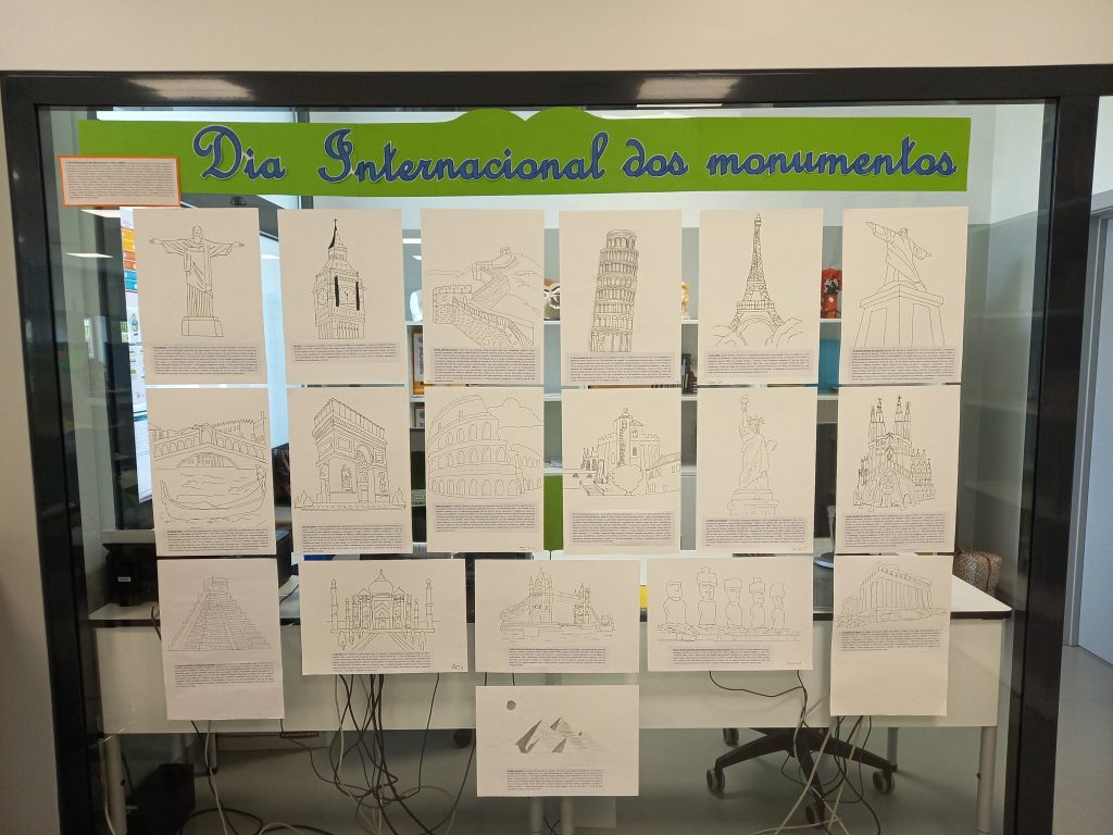 A 18 de abril celebra-se o Dia Internacional dos Monumentos e Sítios. A biblioteca escolar assinala o dia com trabalhos realizados pelos alunos em exposição no seu espaço.