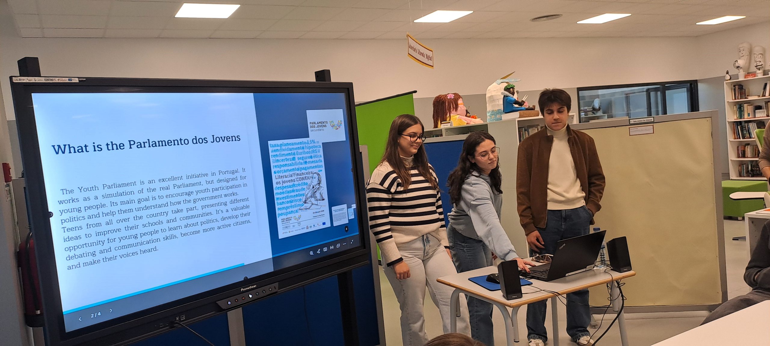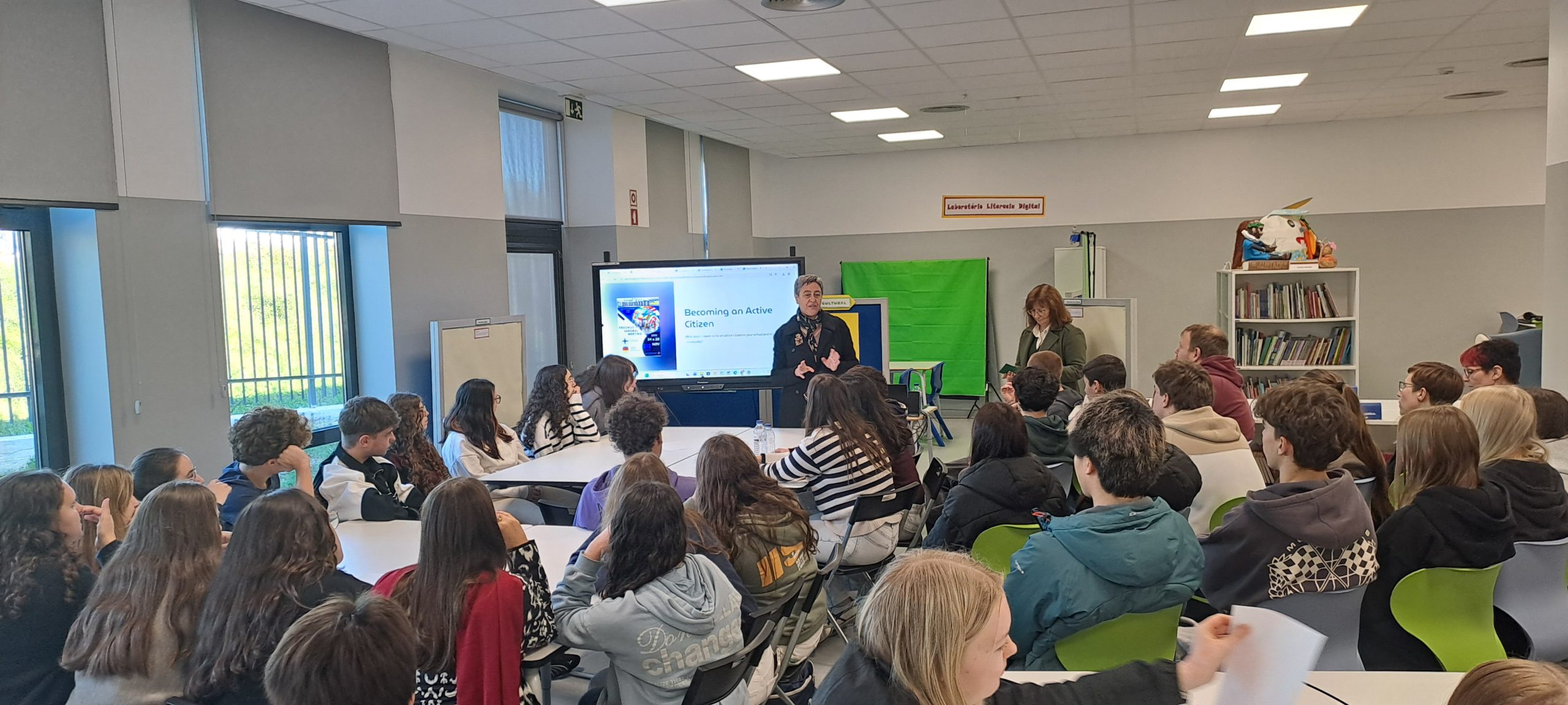 A manhã começou com os alunos finlandeses e alemães a assistirem a diversas aulas, juntamente com os alunos portugueses. Seguiu-se um workshop sobre cidadania ativa intitulado “Becoming an active citizen”. Nesta atividade, os alunos das 3 escolas presentes foram desafiados a dar exemplos de cidadania ativa que existam nas suas escolas ou comunidades, assim como pensarem em atividades/projetos de cidadania ativa para o futuro.