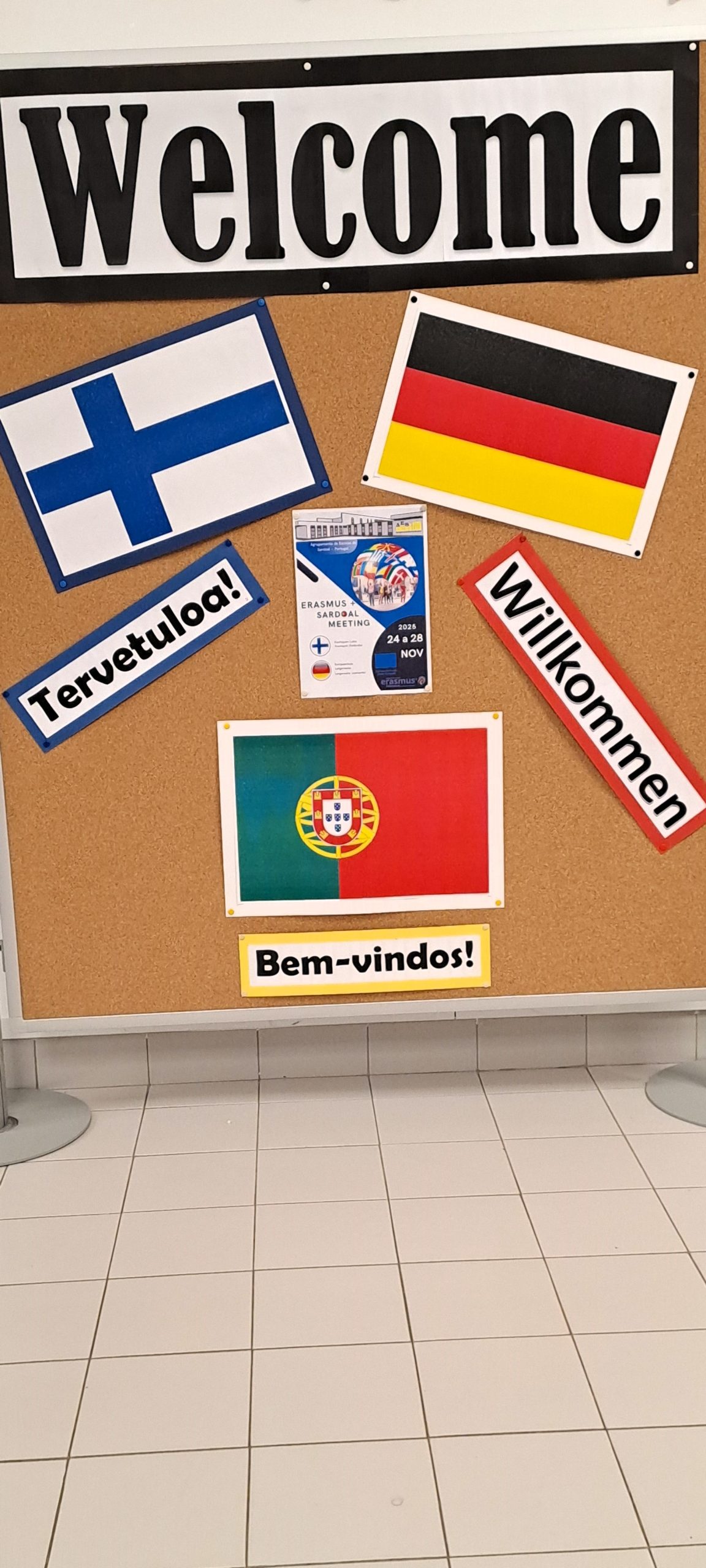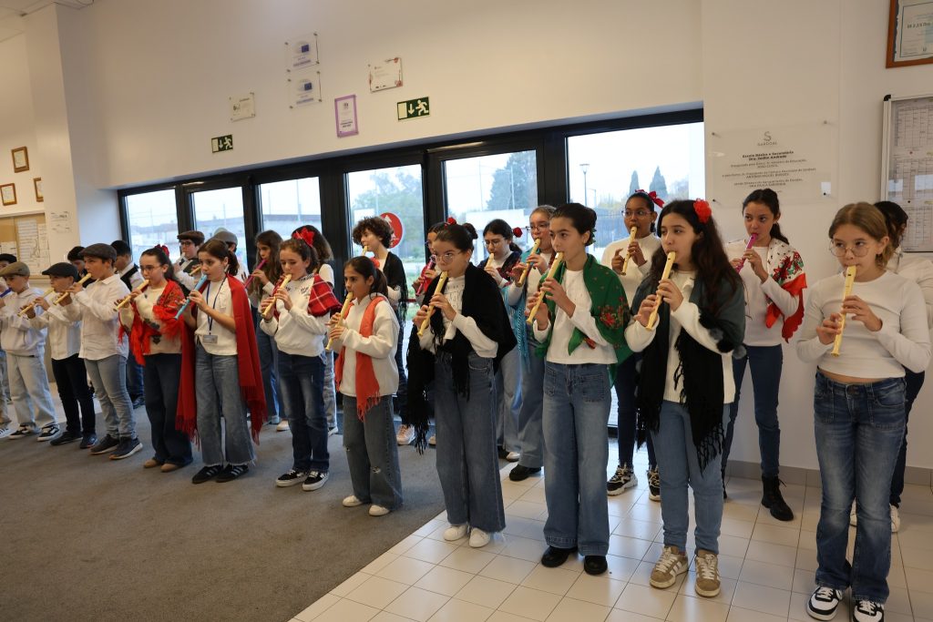 O dia começou com um bonito momento de musical, que trouxe um ambiente acolhedor e cheio de energia ao início das atividades Erasmus+. Seguiu-se o hastear das bandeiras, momento sempre simbólico e cheio de significado para todas as escolas presentes e logo depois, a visita à escola, onde pudemos mostrar aos nossos convidados, as instalações, serviços e alguns espaços pedagógicos existentes.