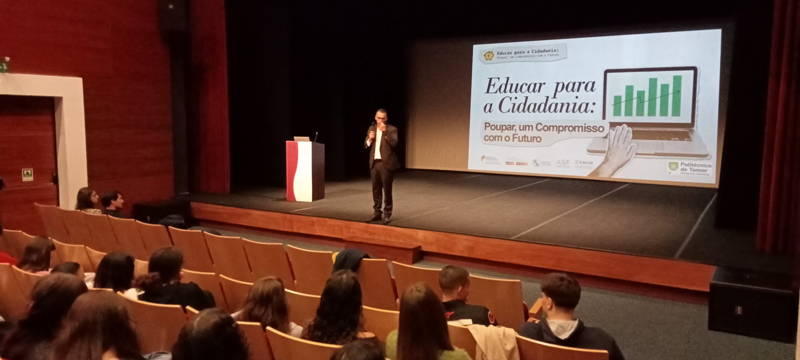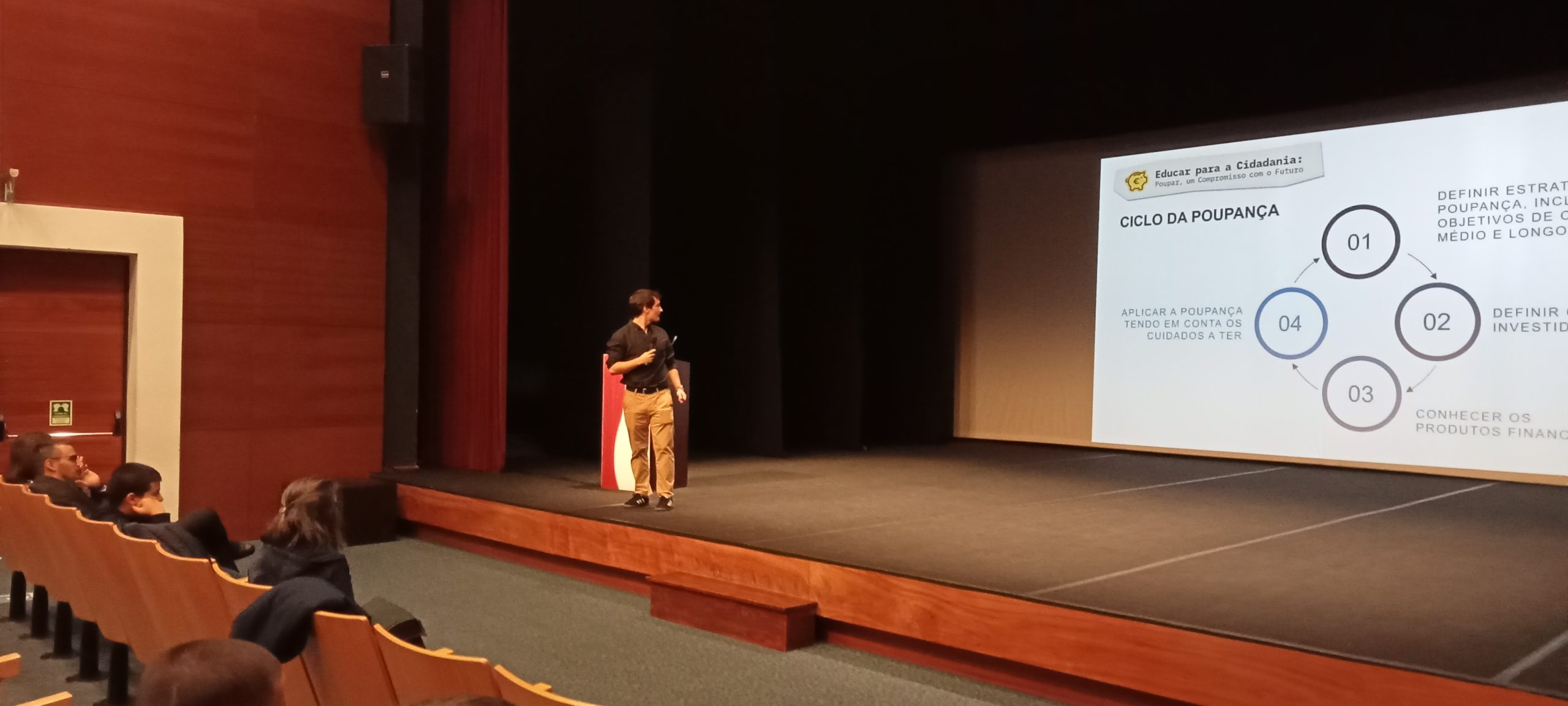 A palestra “Poupar: um compromisso para o futuro”, dirigida aos alunos do 3.º ciclo e do ensino secundário, revelou-se uma experiência enriquecedora e estimulante. Ao longo da sessão, os participantes tiveram a oportunidade de refletir sobre a importância da poupança e da gestão responsável do dinheiro, temas essenciais para o seu futuro pessoal e profissional.