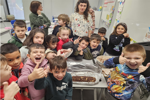 Durante a manhã, os alunos tiveram a oportunidade de aprender a fazer um salame sem ovos, uma receita adaptada para todos poderem participar em segurança e desfrutar do resultado final. Com muita atenção e entusiasmo, os alunos ajudaram na preparação e, no final, puderam degustar o salame preparado em conjunto.
