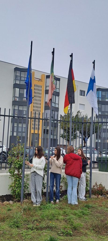 O dia começou com um bonito momento de musical, que trouxe um ambiente acolhedor e cheio de energia ao início das atividades Erasmus+. Seguiu-se o hastear das bandeiras, momento sempre simbólico e cheio de significado para todas as escolas presentes e logo depois, a visita à escola, onde pudemos mostrar aos nossos convidados, as instalações, serviços e alguns espaços pedagógicos existentes.